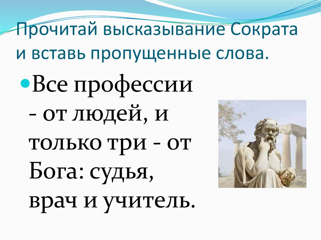 Прочитай высказывание Сократаи вставь пропущенные слова.