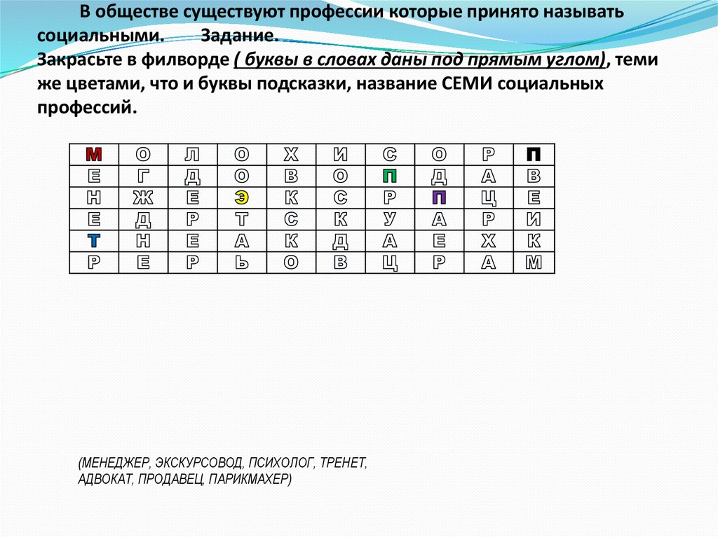 АДВОКАТ, ПРОДАВЕЦ, ПАРИКМАХЕР)