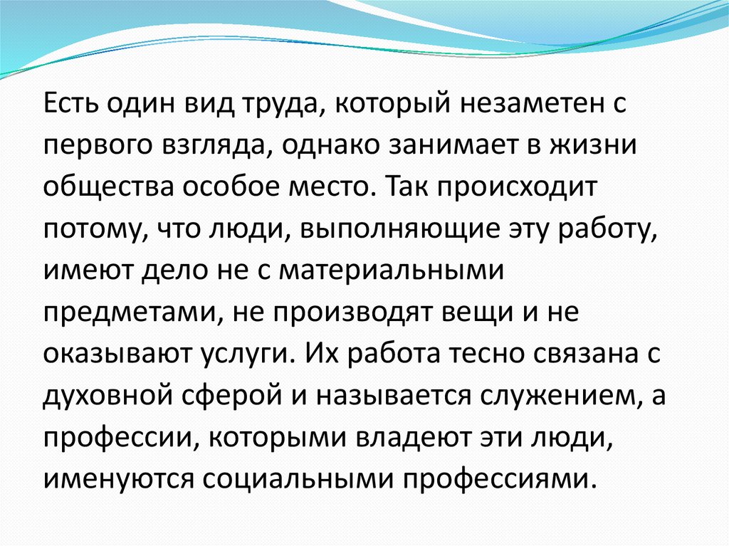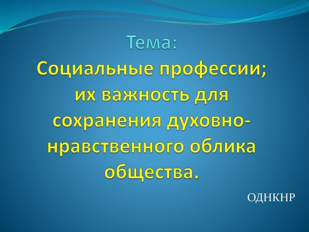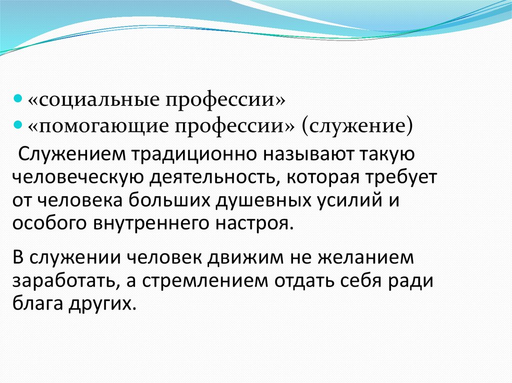 Социальные профессии; их важность для сохранения духовно - нравственного облика общества