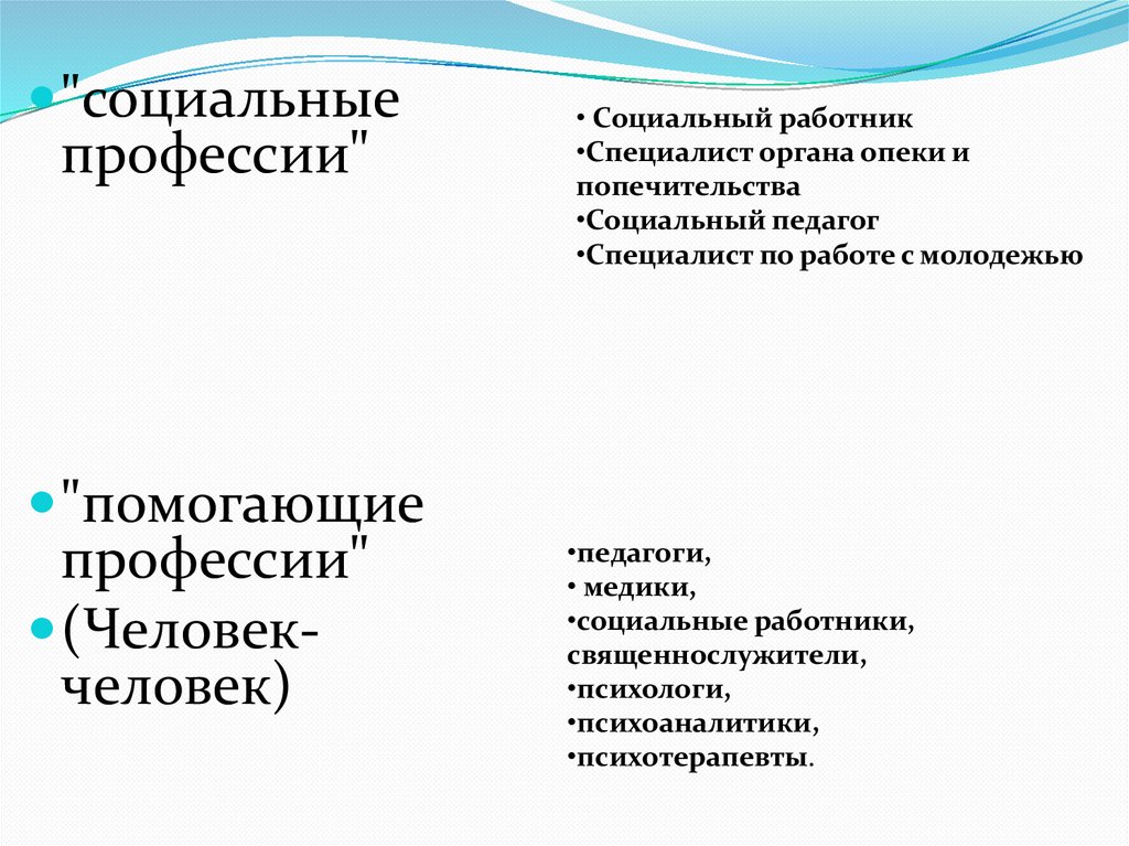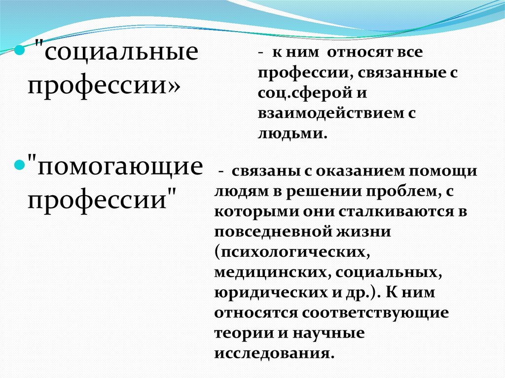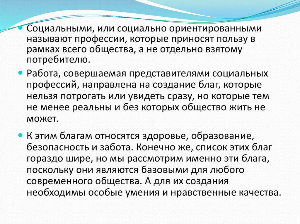 Социальными, или социально ориентированныминазывают профессии, которые приносят пользу в