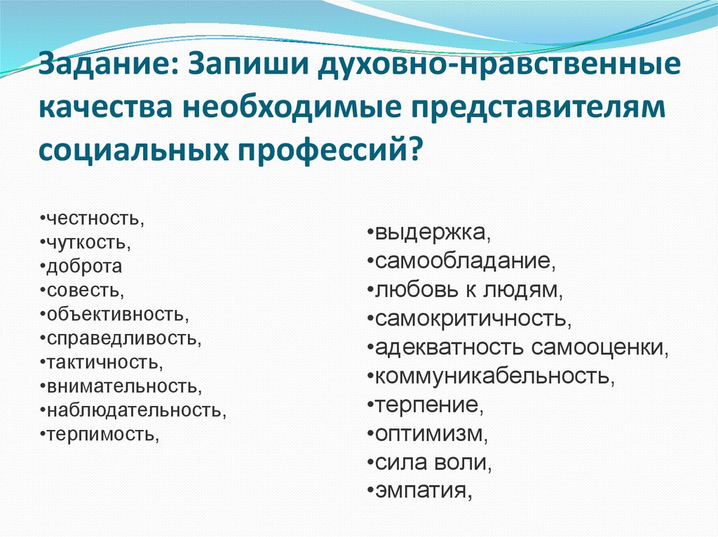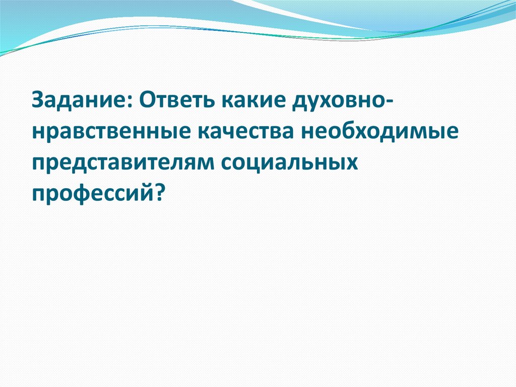 Задание: Ответь какие духовнонравственные качества необходимыепредставителям социальных