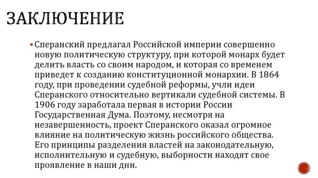 Сперанский предлагал Российской империи совершенноновую политическую структуру, при которой монарх будет