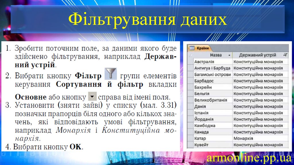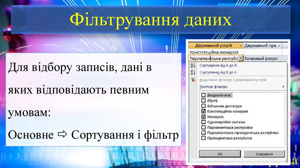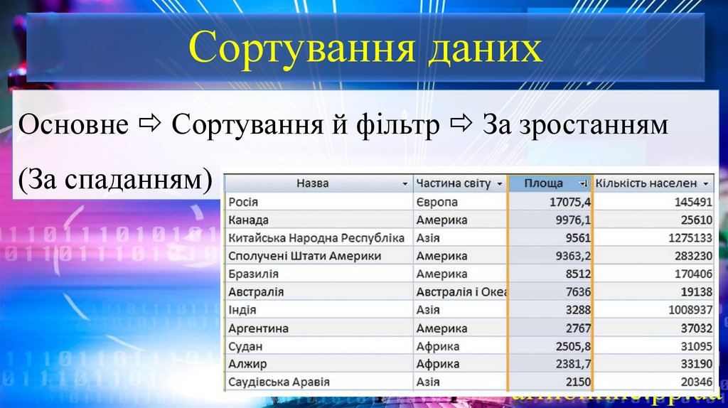 Сортування данихОсновне Сортування й фільтр За зростанням