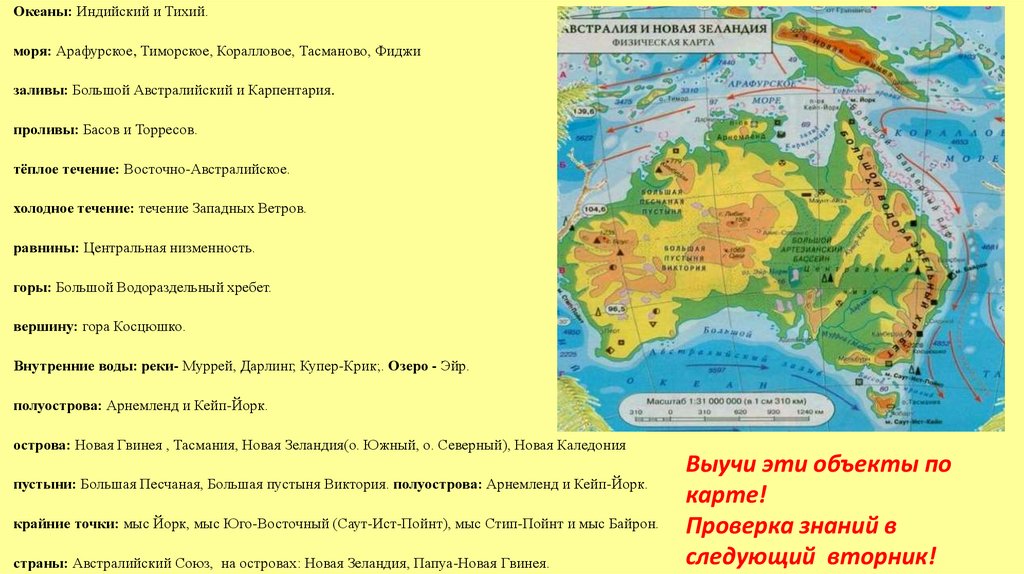 Начните учить объекты на карте Австралии (слайд№ 3). Проверка