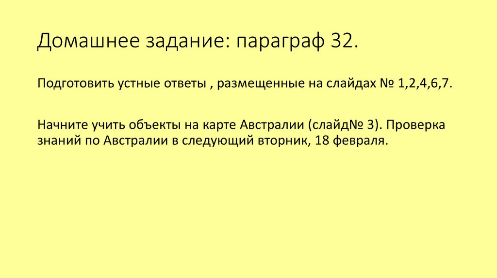 Домашнее задание: параграф 32.Подготовить устные ответы , размещенные на слайдах № 1,2,4,6,7.
