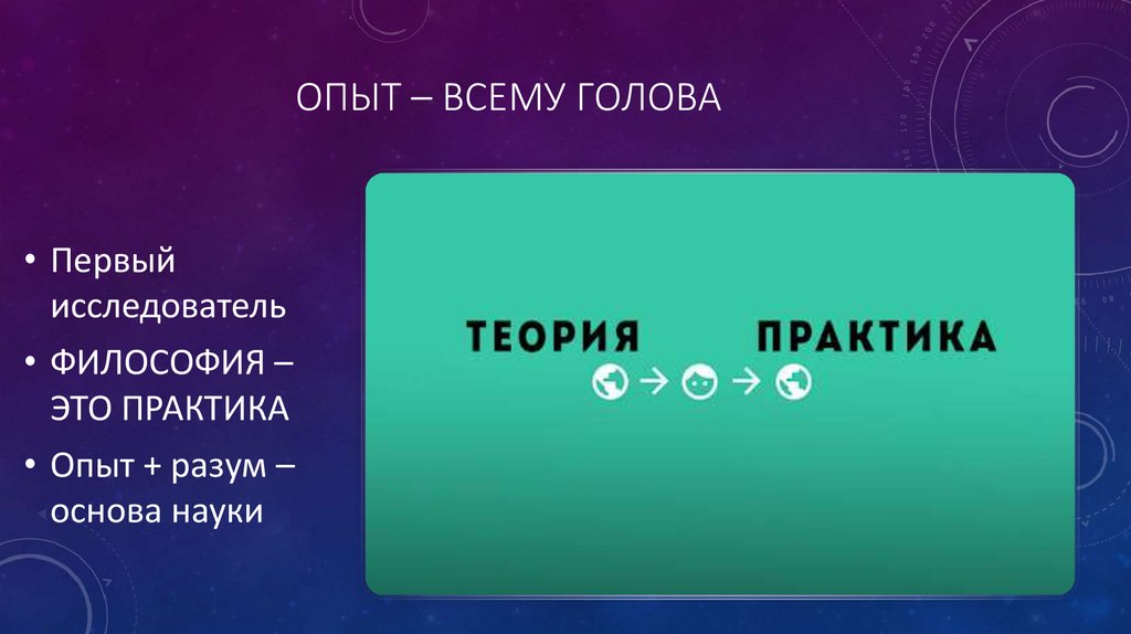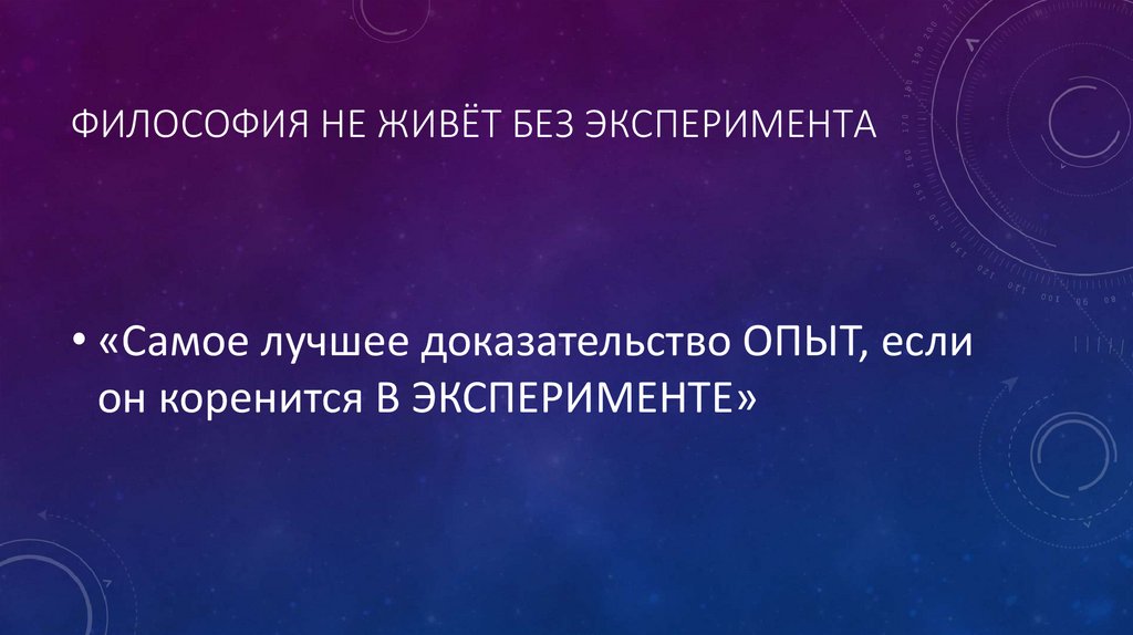 ФИЛОСОФИЯ НЕ ЖИВЁТ БЕЗ ЭКСПЕРИМЕНТА• «Самое лучшее доказательство ОПЫТ, если