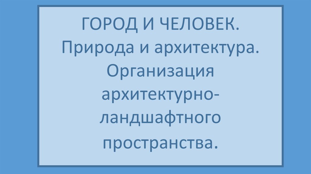 Город и человек. Природа и архитектура. Организация архитектурно- ландшафтного пространства