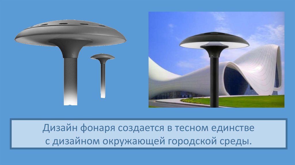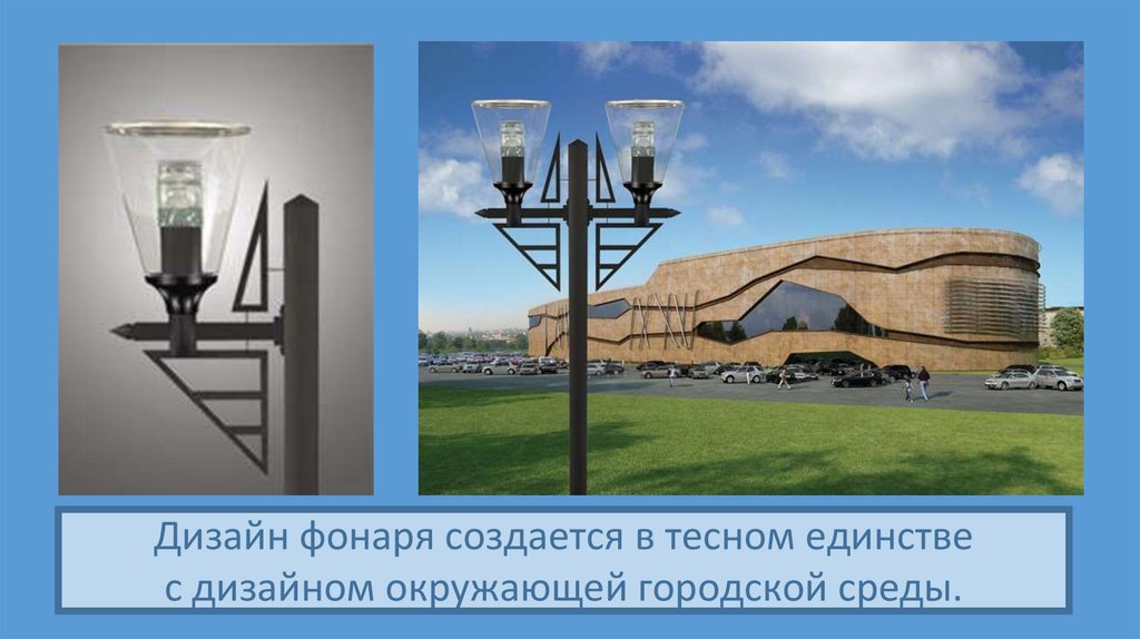 Дизайн фонаря создается в тесном единствес дизайном окружающей городской среды.