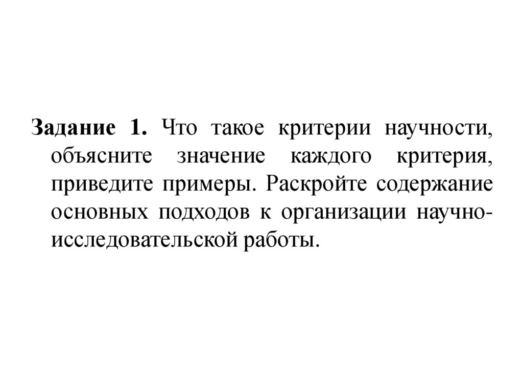 Задание 1. Что такое критерии научности,объясните значение каждого критерия,