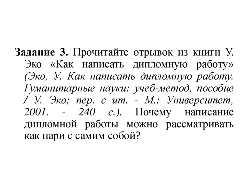 Задание 3. Прочитайте отрывок из книги У.Эко «Как написать дипломную работу»