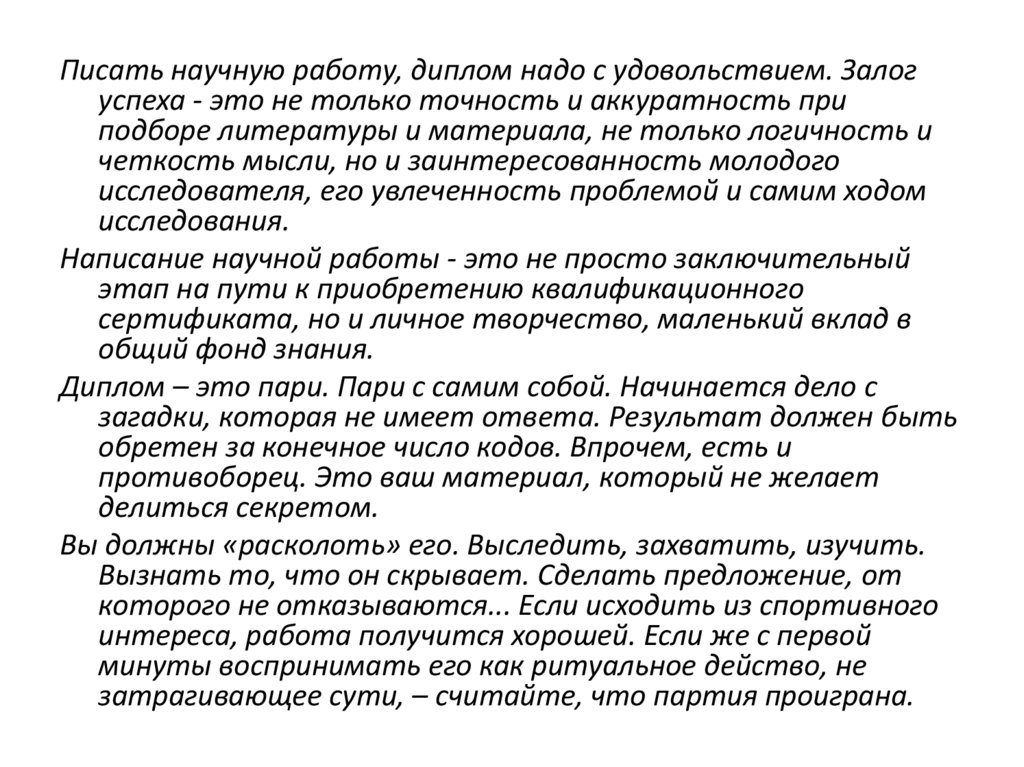 Писать научную работу, диплом надо с удовольствием. Залогуспеха - это не только точность и аккуратность при