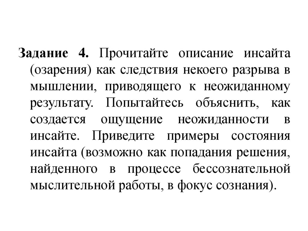 Задание 4. Прочитайте описание инсайта(озарения) как следствия некоего разрыва в