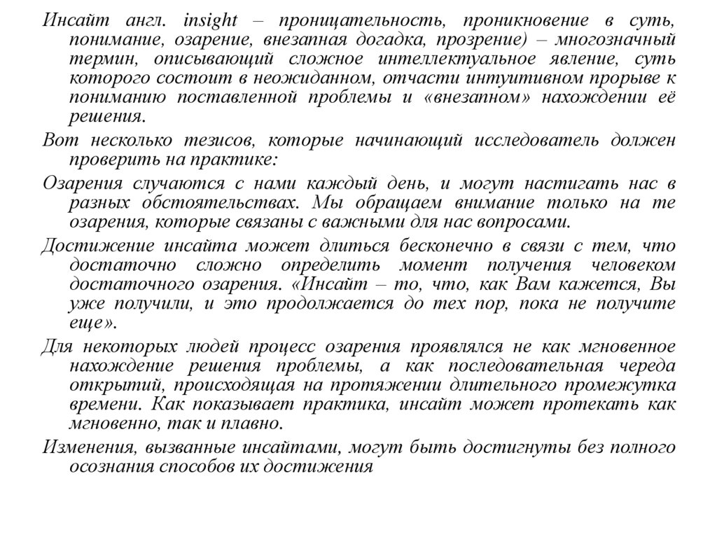 достаточного озарения. «Инсайт – то, что, как Вам кажется, Вы