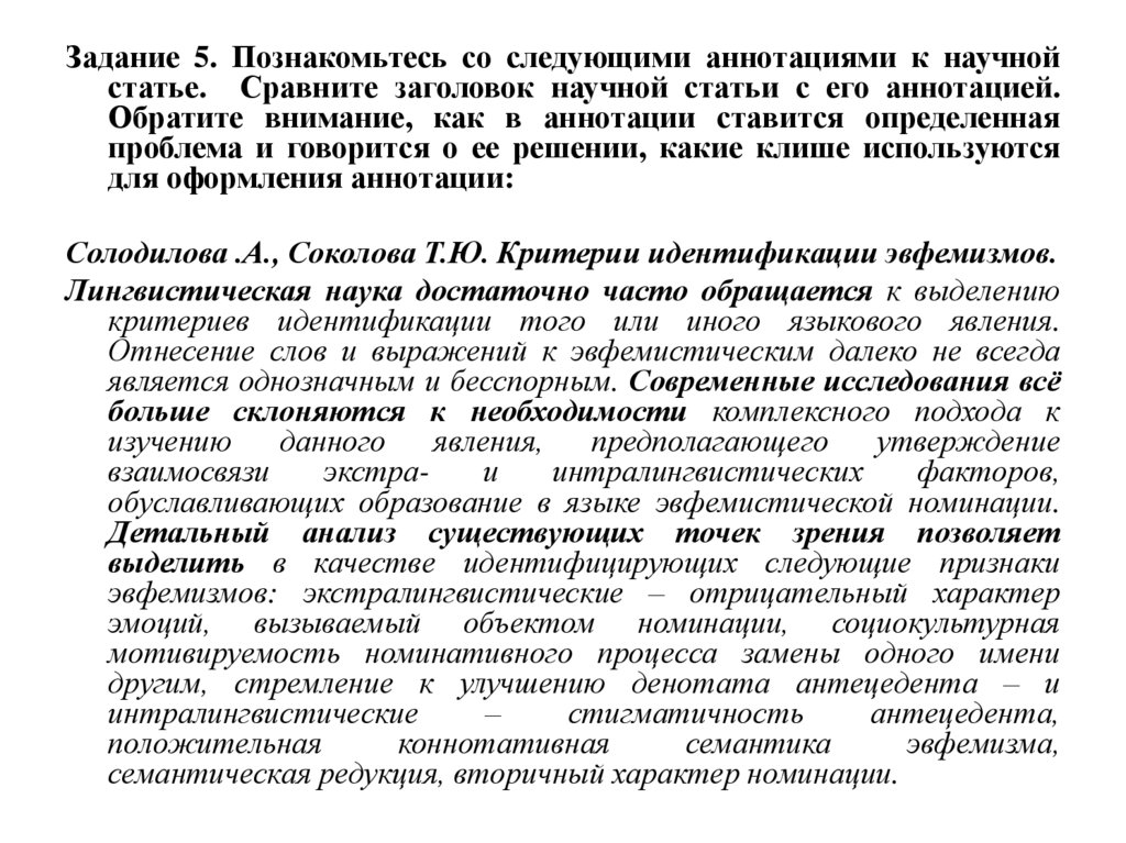 Задание 5. Познакомьтесь со следующими аннотациями к научнойстатье. Сравните заголовок научной статьи с его аннотацией.
