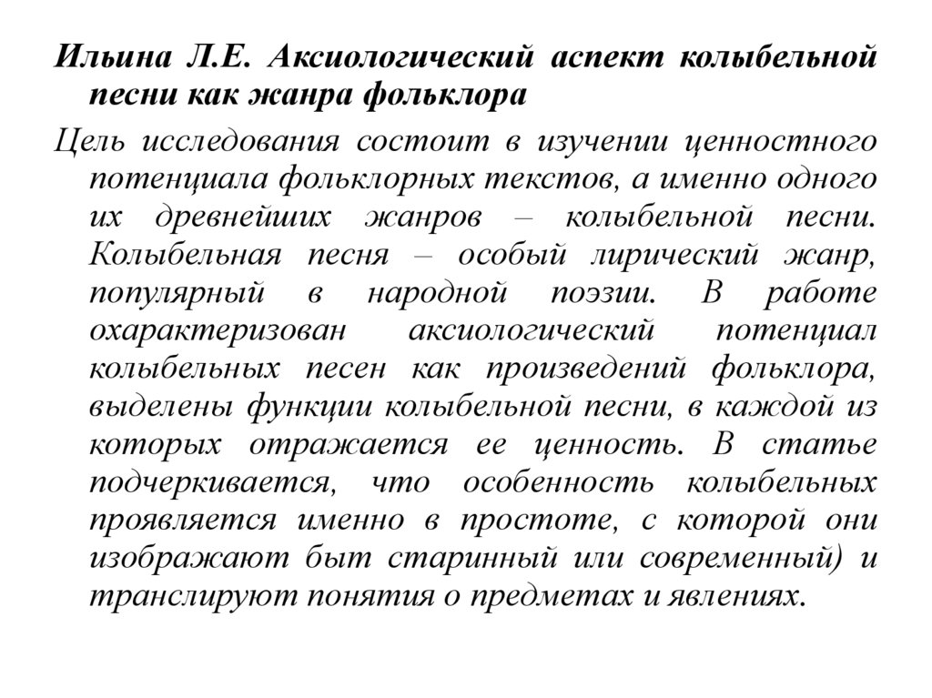 Ильина Л.Е. Аксиологический аспект колыбельнойпесни как жанра фольклора