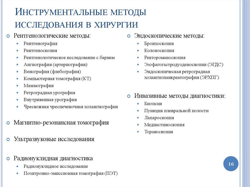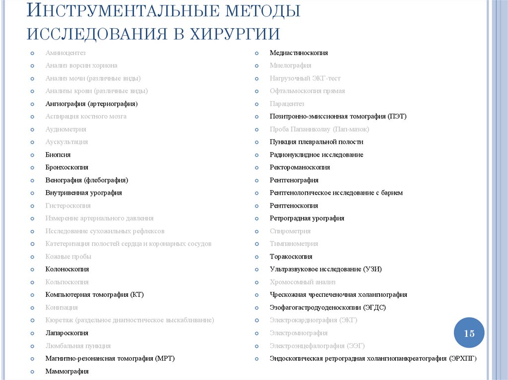 Методика диагностики хирургических заболеваний. Лабораторные и инструментальные методы обследования