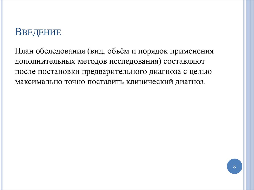 ВВЕДЕНИЕПлан обследования (вид, объём и порядок применения