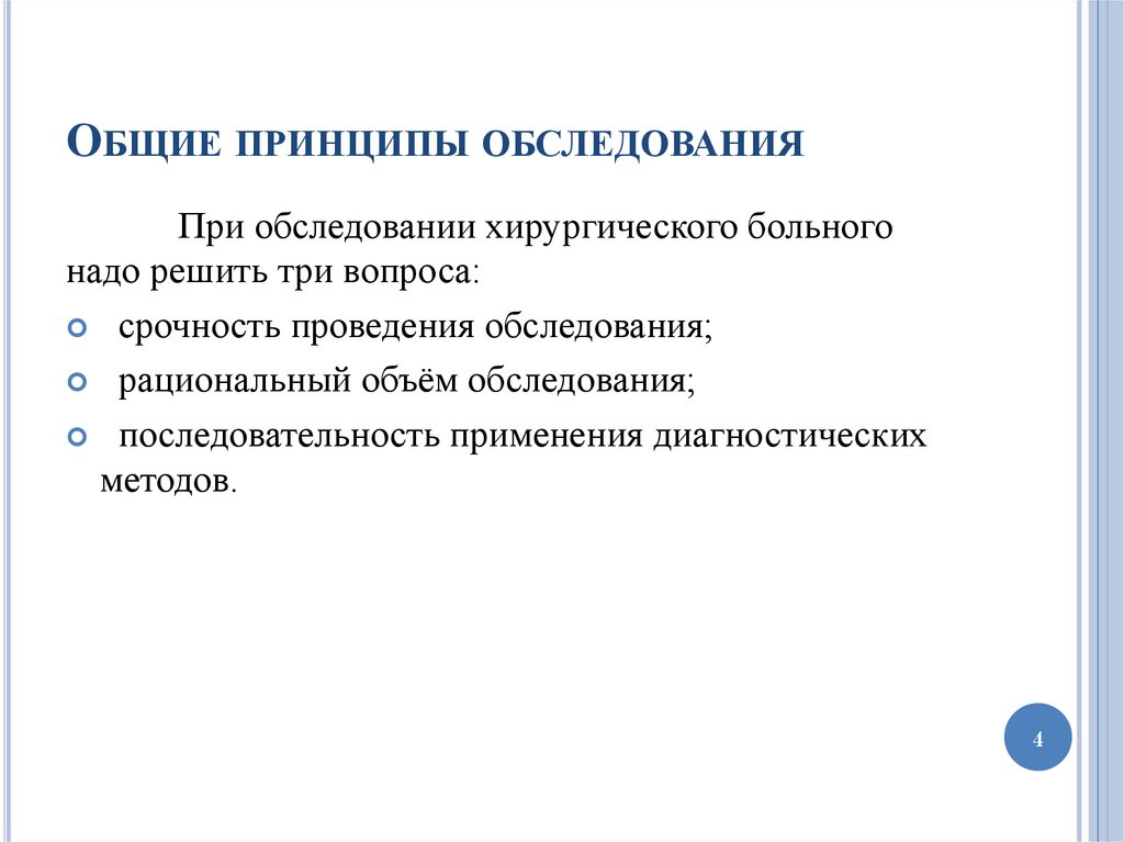 ОБЩИЕ ПРИНЦИПЫ ОБСЛЕДОВАНИЯПри обследовании хирургического больного