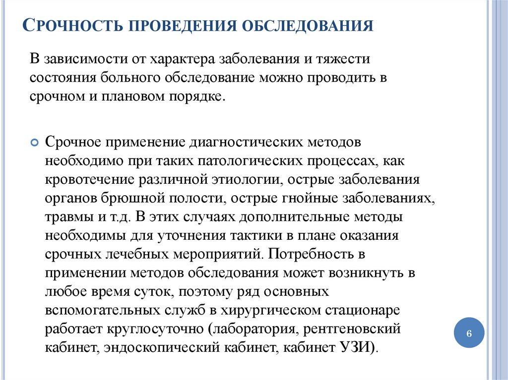 СРОЧНОСТЬ ПРОВЕДЕНИЯ ОБСЛЕДОВАНИЯВ зависимости от характера заболевания и тяжести
