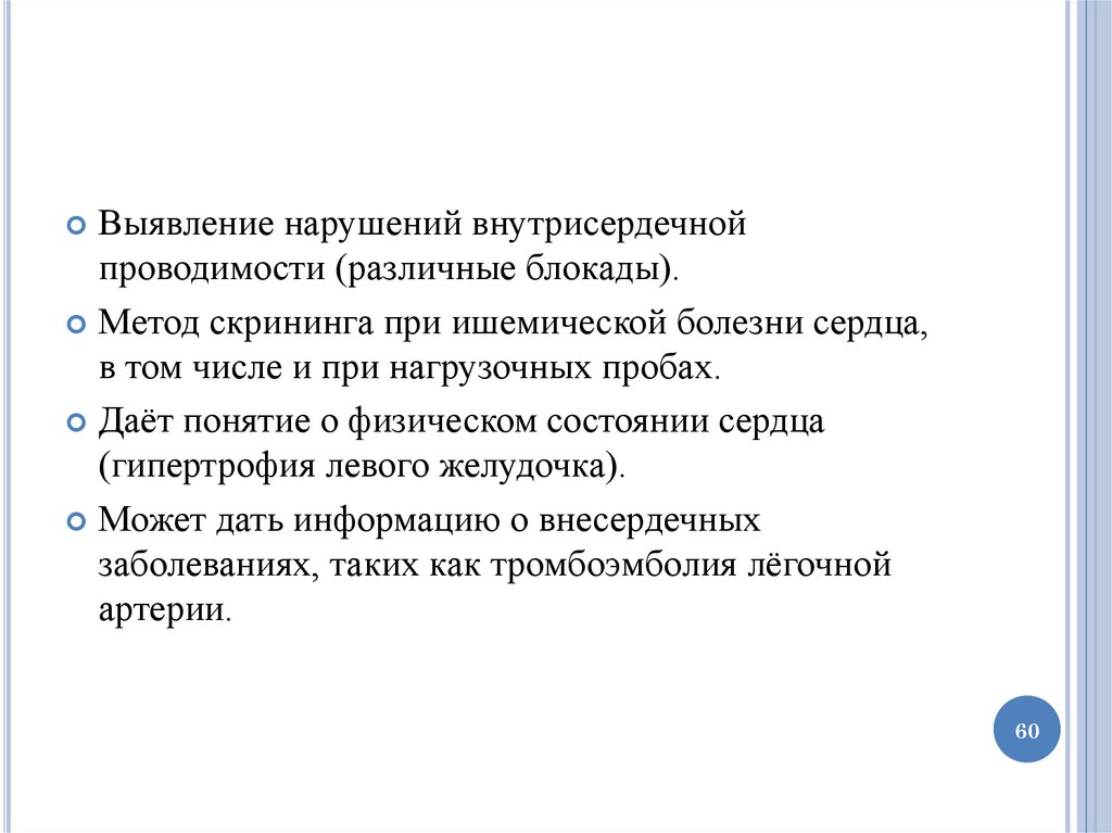Выявление нарушений внутрисердечнойпроводимости (различные блокады).