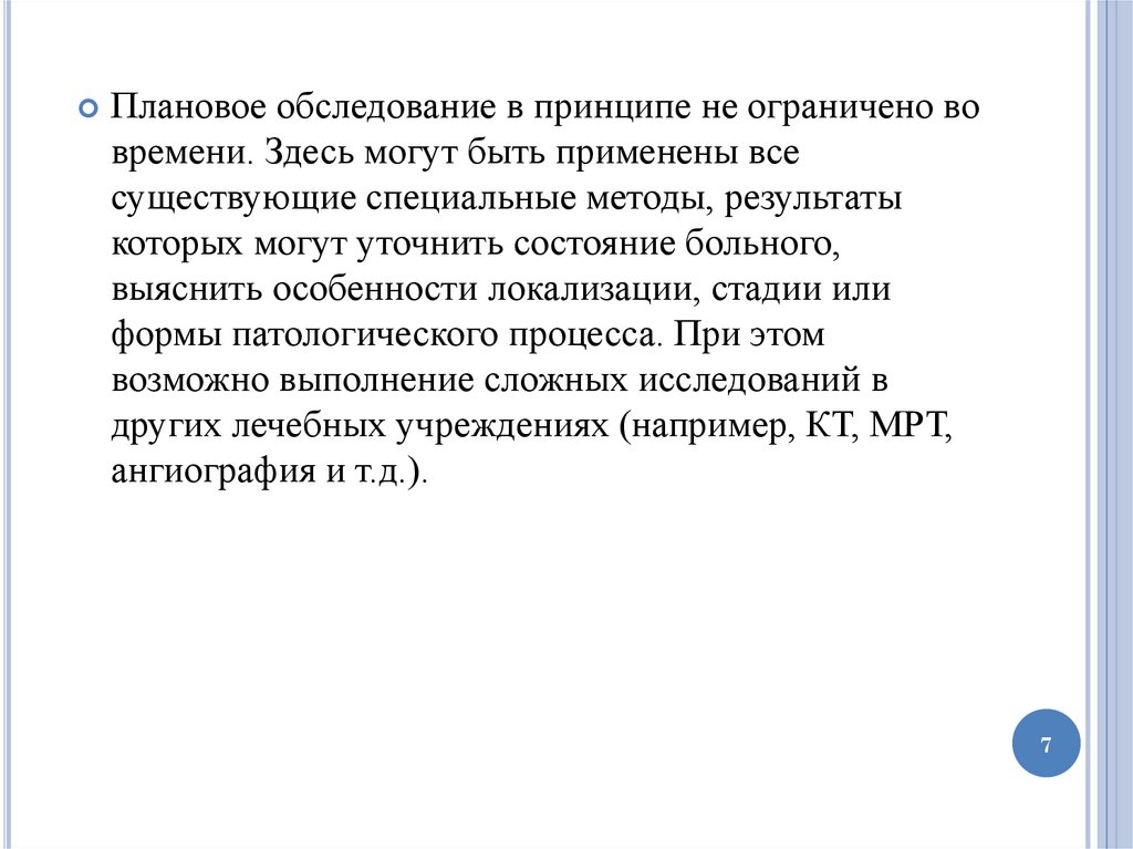 Плановое обследование в принципе не ограничено вовремени. Здесь могут быть применены все