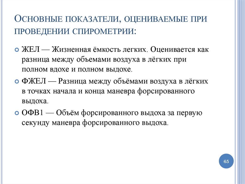 ОСНОВНЫЕ ПОКАЗАТЕЛИ, ОЦЕНИВАЕМЫЕ ПРИПРОВЕДЕНИИ СПИРОМЕТРИИ: