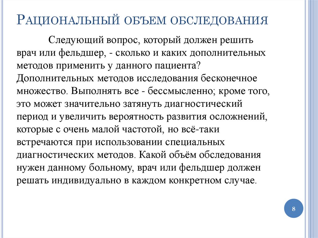 РАЦИОНАЛЬНЫЙ ОБЪЕМ ОБСЛЕДОВАНИЯСледующий вопрос, который должен решить