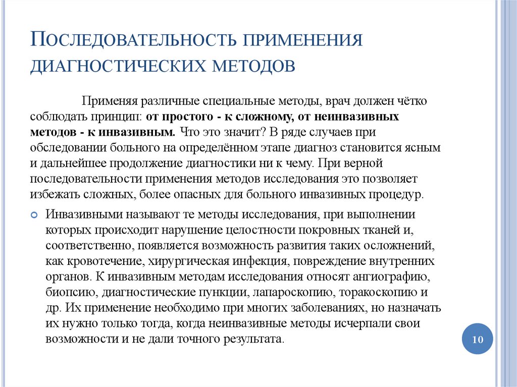 ПОСЛЕДОВАТЕЛЬНОСТЬ ПРИМЕНЕНИЯДИАГНОСТИЧЕСКИХ МЕТОДОВ
