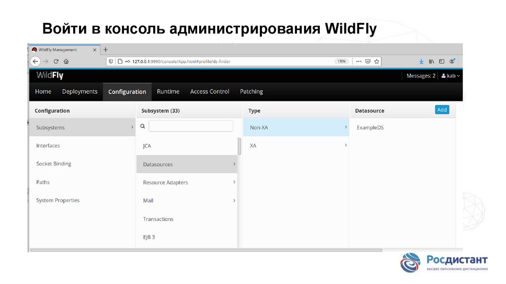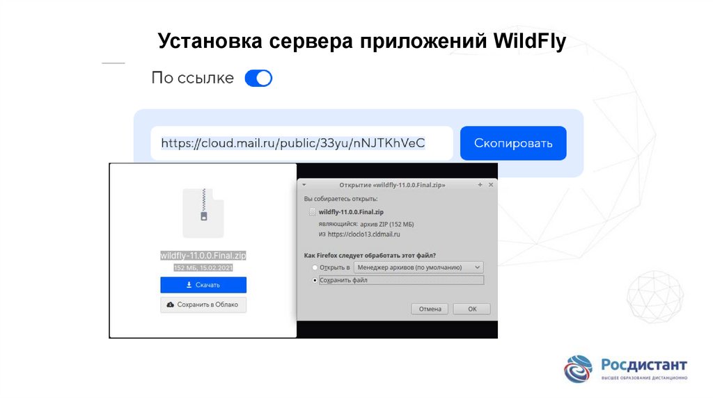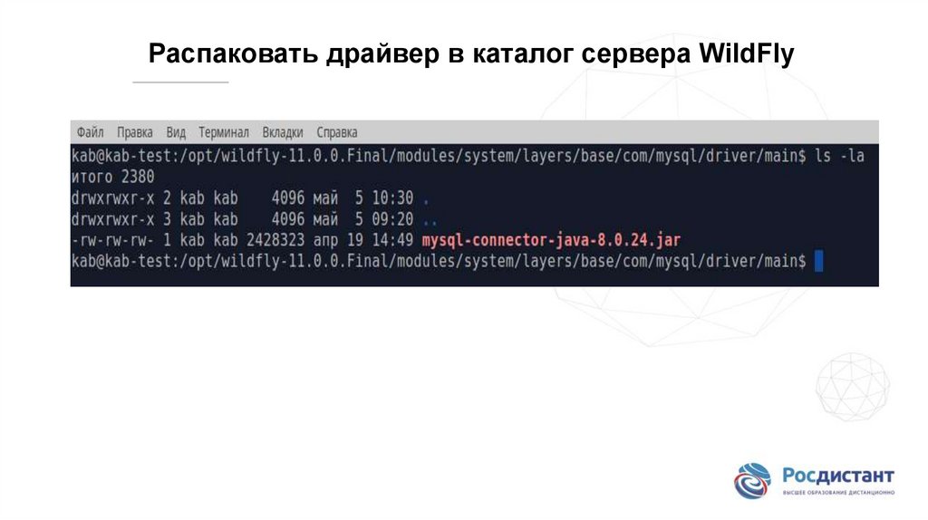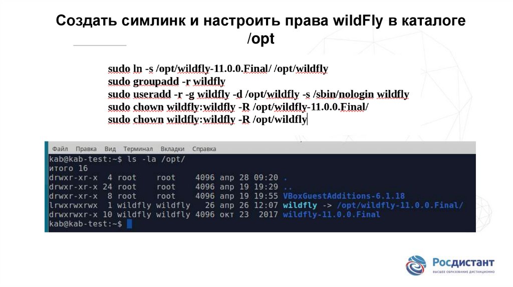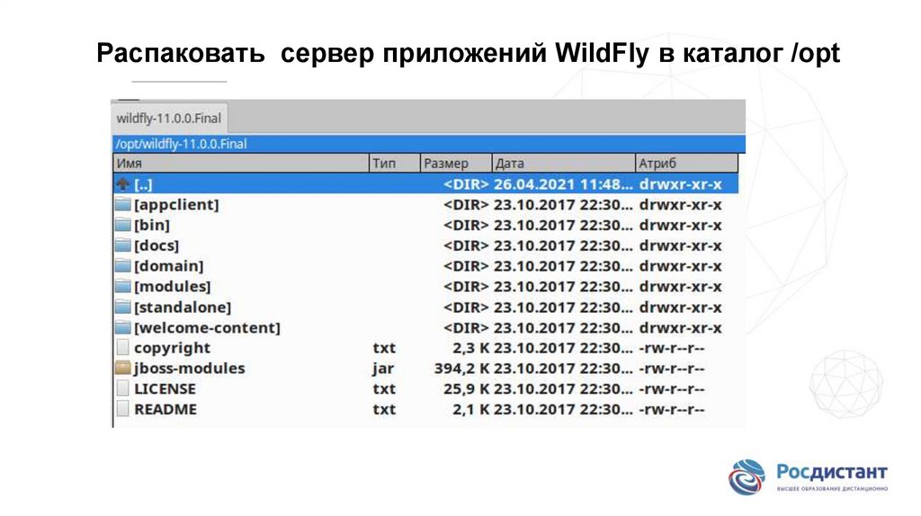 Распаковать сервер приложений WildFly в каталог /opt15.