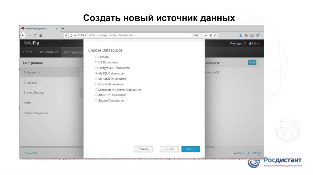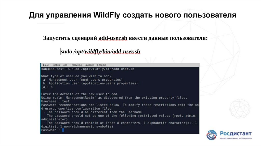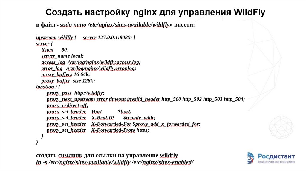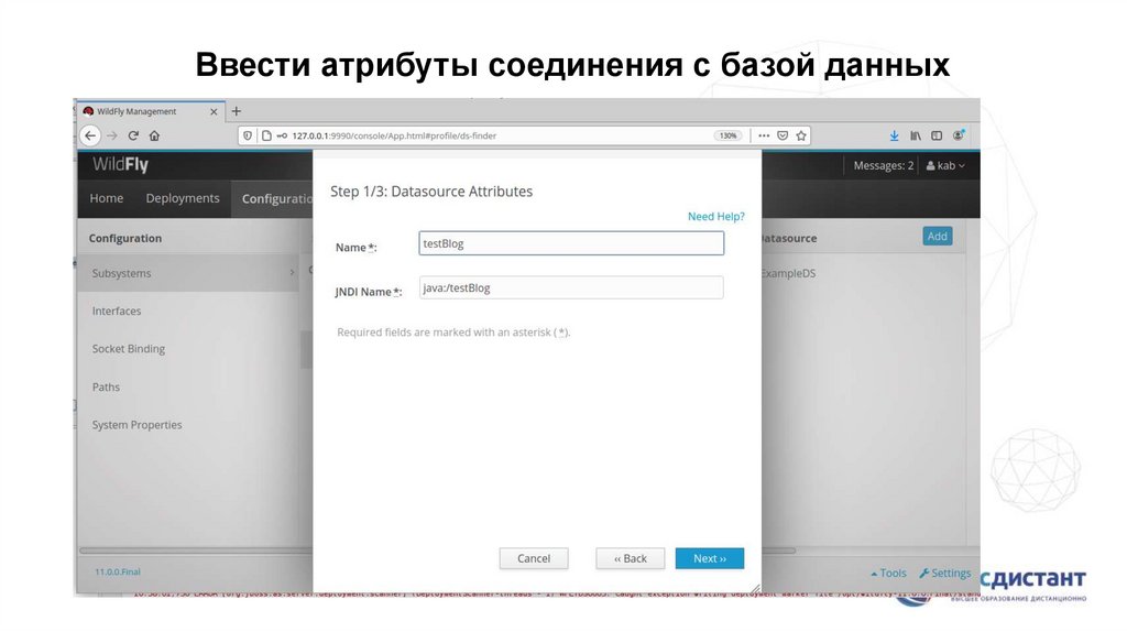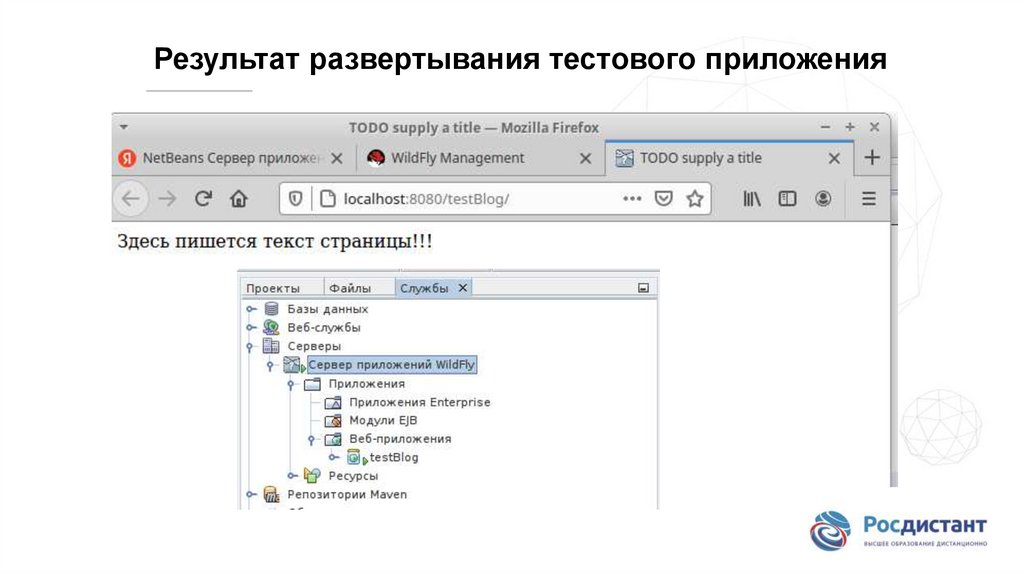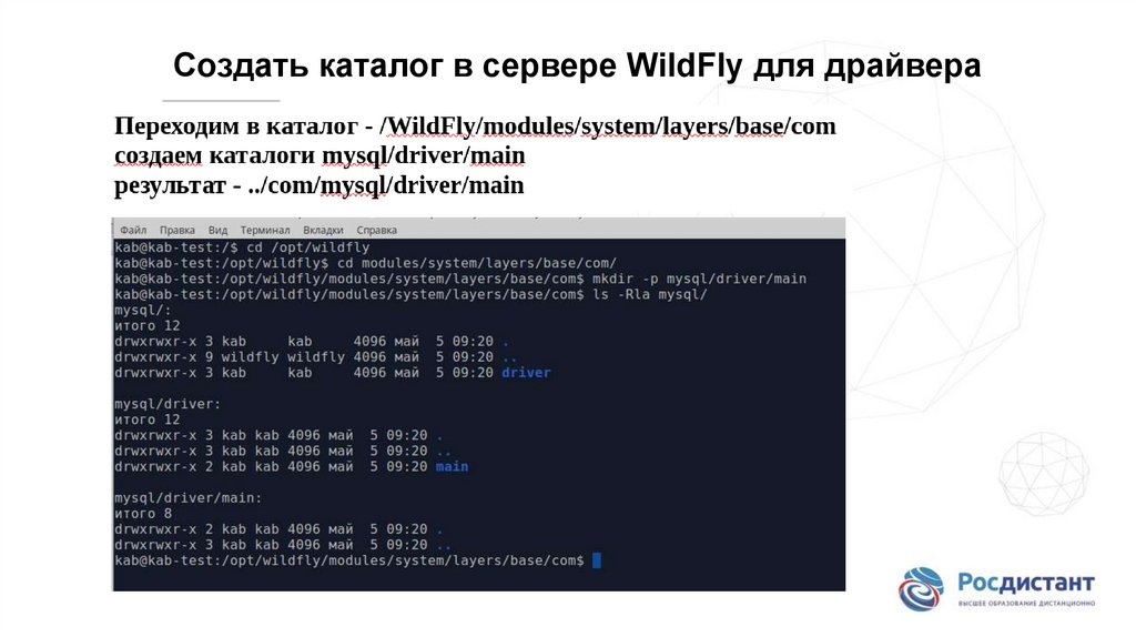 Распаковать сервер приложений WildFly в каталог /opt15.