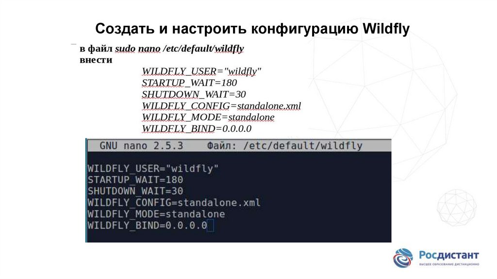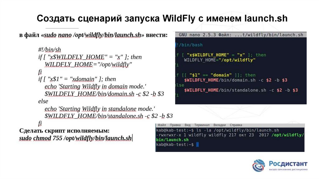 Создать сценарий запуска WildFly с именем launch.sh19.
