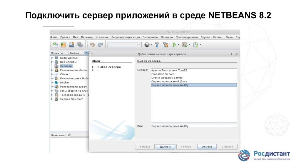 Подключить сервер приложений в среде NETBEANS 8.230.