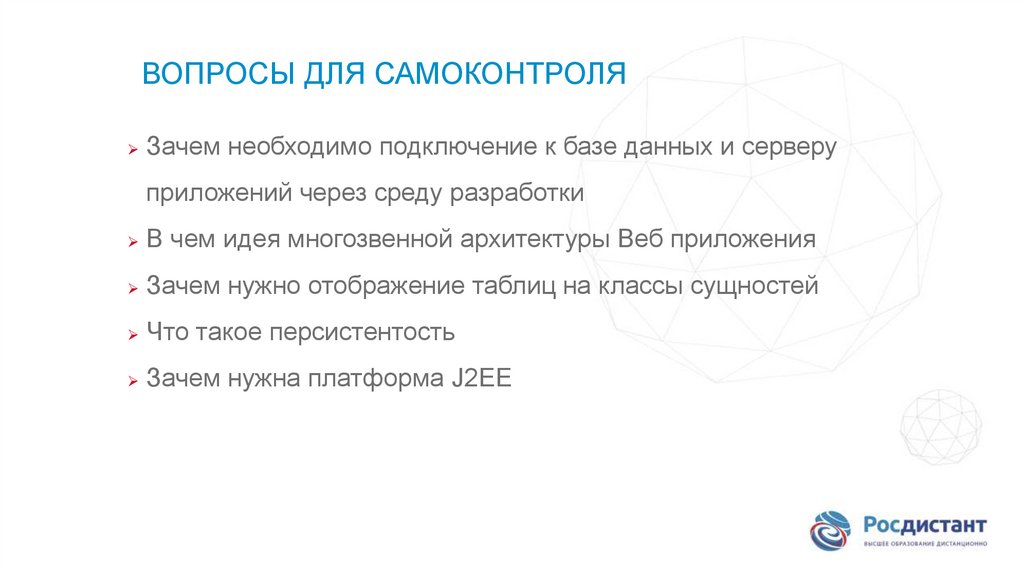 ВОПРОСЫ ДЛЯ САМОКОНТРОЛЯЗачем необходимо подключение к базе данных и серверу