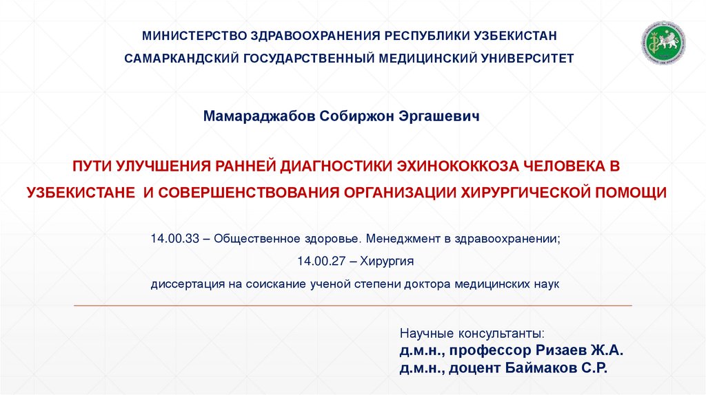 МИНИСТЕРСТВО ЗДРАВООХРАНЕНИЯ РЕСПУБЛИКИ УЗБЕКИСТАНСАМАРКАНДСКИЙ ГОСУДАРСТВЕННЫЙ МЕДИЦИНСКИЙ УНИВЕРСИТЕТ