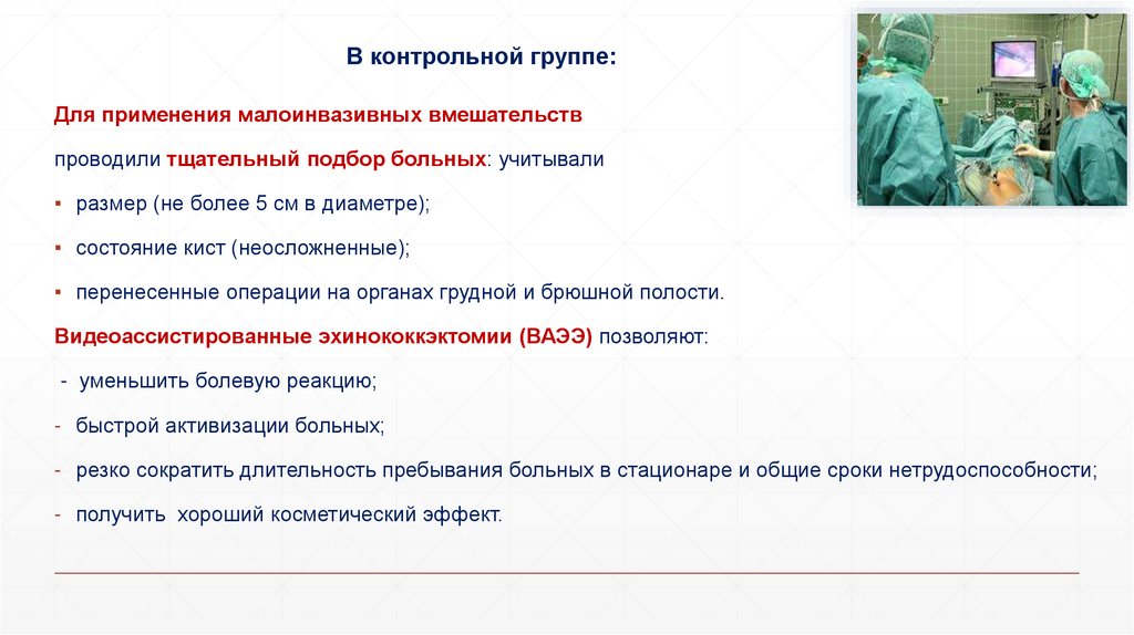вмешательств при эхинококкозе органов грудной и брюшной полости;