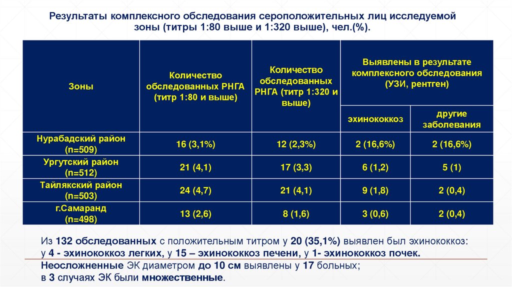 отношении эхинококкоза. Уровень пораженности – 6-9