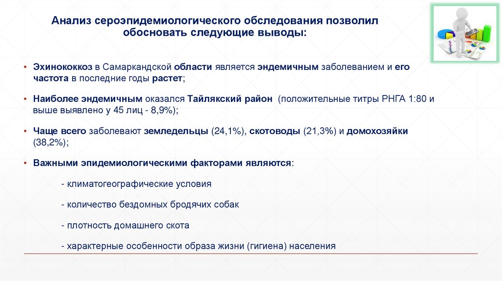 ▪ оценить группы риска путем анализа эпидемиологических аспектов эхинококкоза в