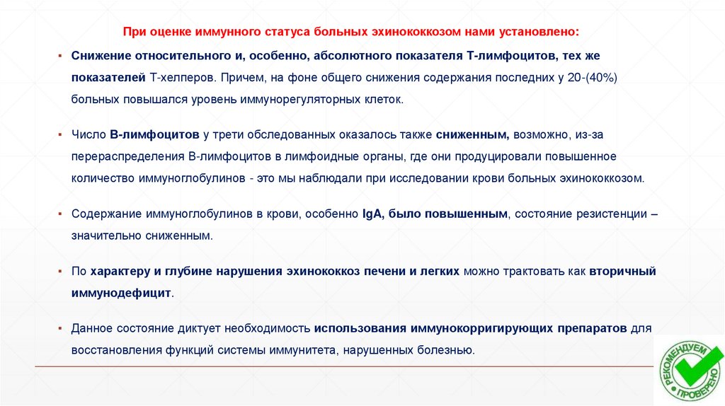 метаболитов гриба на организм больного эхинококкозом с нагноением ЭК.