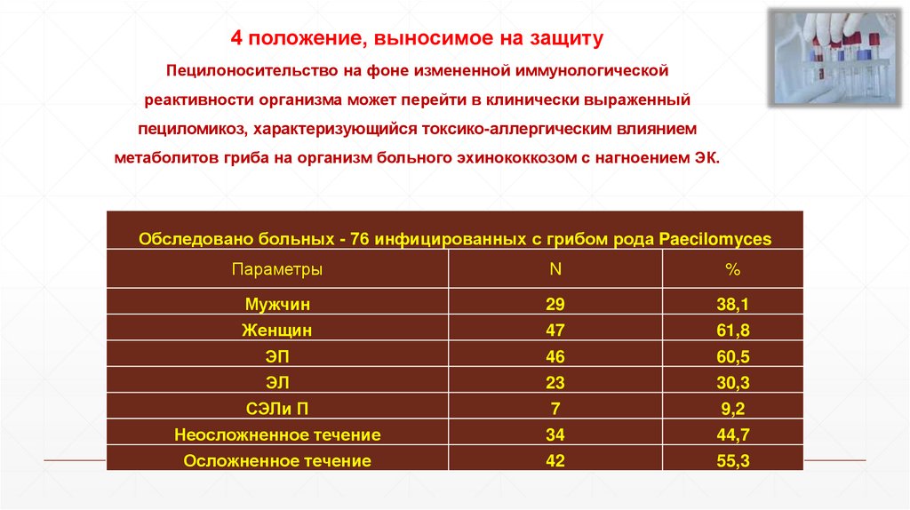 ▪ определить роль инфекции пециломикоза в развитии осложнений эхинококкоза и