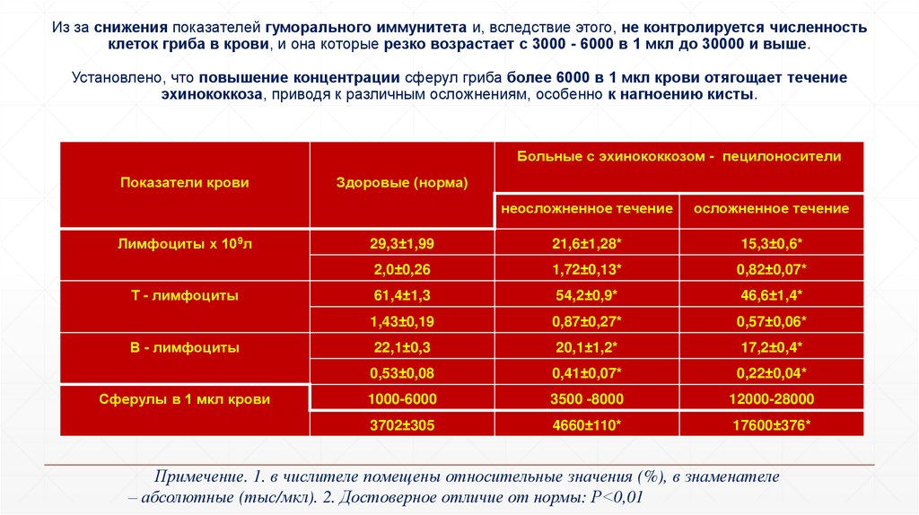 – абсолютные (тыс/мкл). 2. Достоверное отличие от нормы: Р<0,01