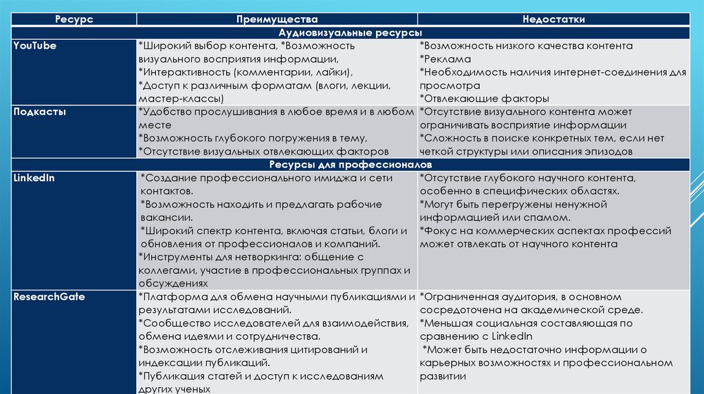 *Широкий спектр контента, включая статьи, блоги и *Фокус на коммерческих аспектах профессий