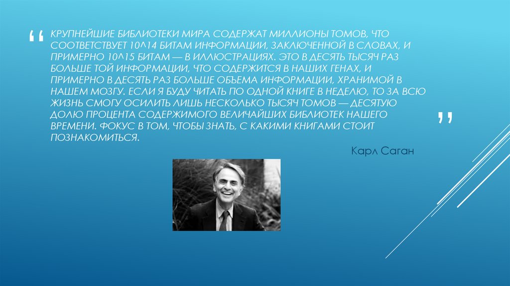 “КРУПНЕЙШИЕ БИБЛИОТЕКИ МИРА СОДЕРЖАТ МИЛЛИОНЫ ТОМОВ, ЧТО