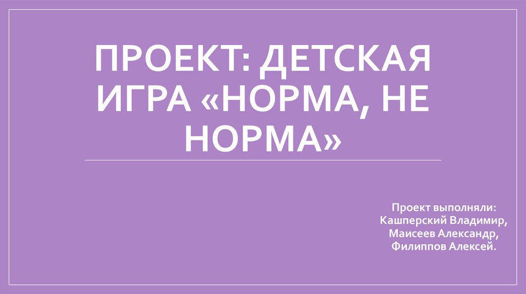 ПРОЕКТ: ДЕТСКАЯИГРА «НОРМА, НЕ