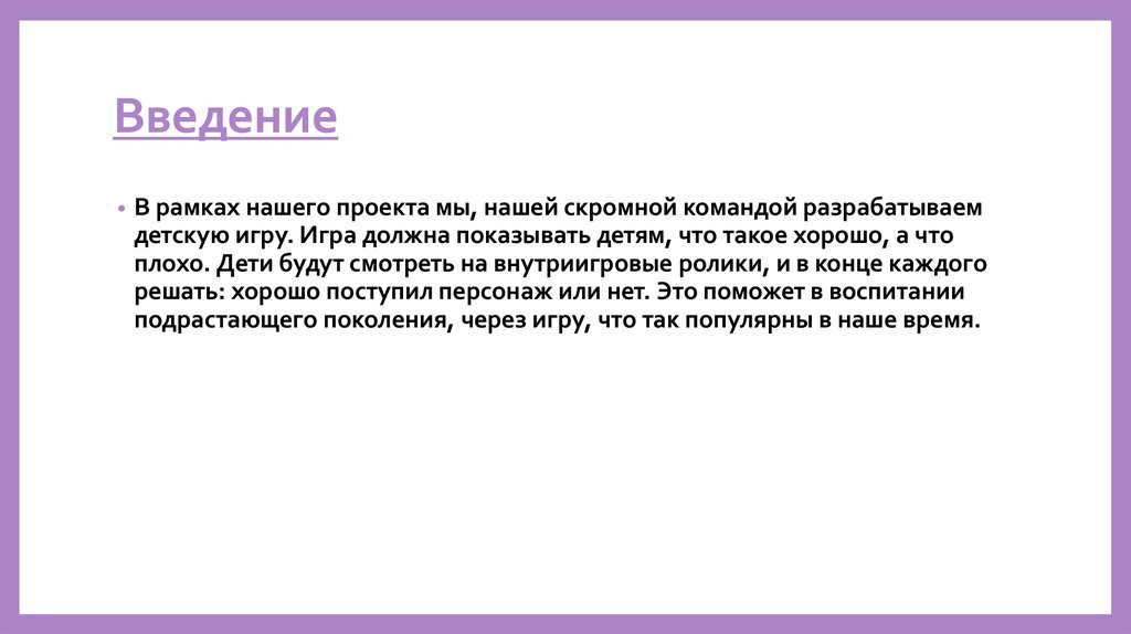 Введение• В рамках нашего проекта мы, нашей скромной командой разрабатываем