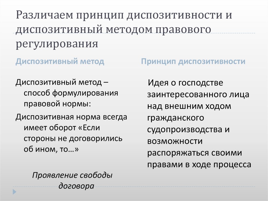 Различаем принцип диспозитивности идиспозитивный методом правового