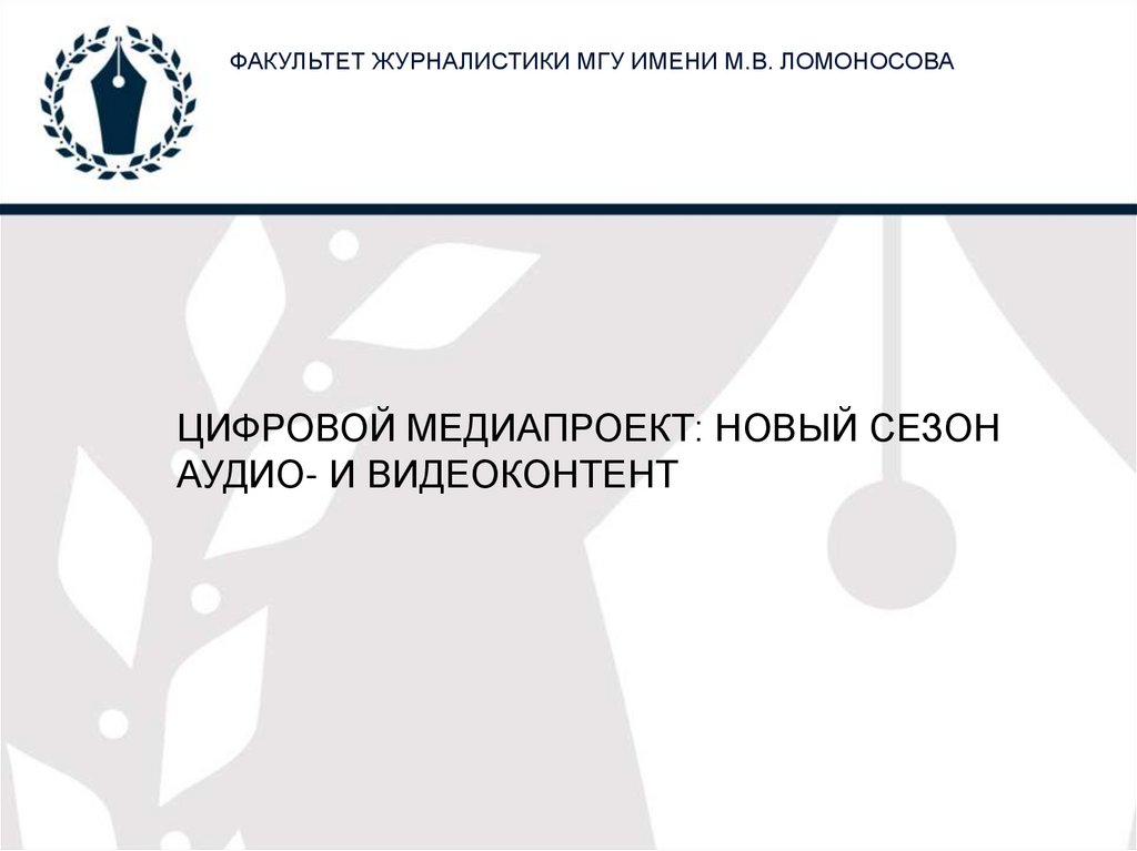 ФАКУЛЬТЕТ ЖУРНАЛИСТИКИ МГУ ИМЕНИ М.В. ЛОМОНОСОВАЦИФРОВОЙ МЕДИАПРОЕКТ: НОВЫЙ СЕЗОН
