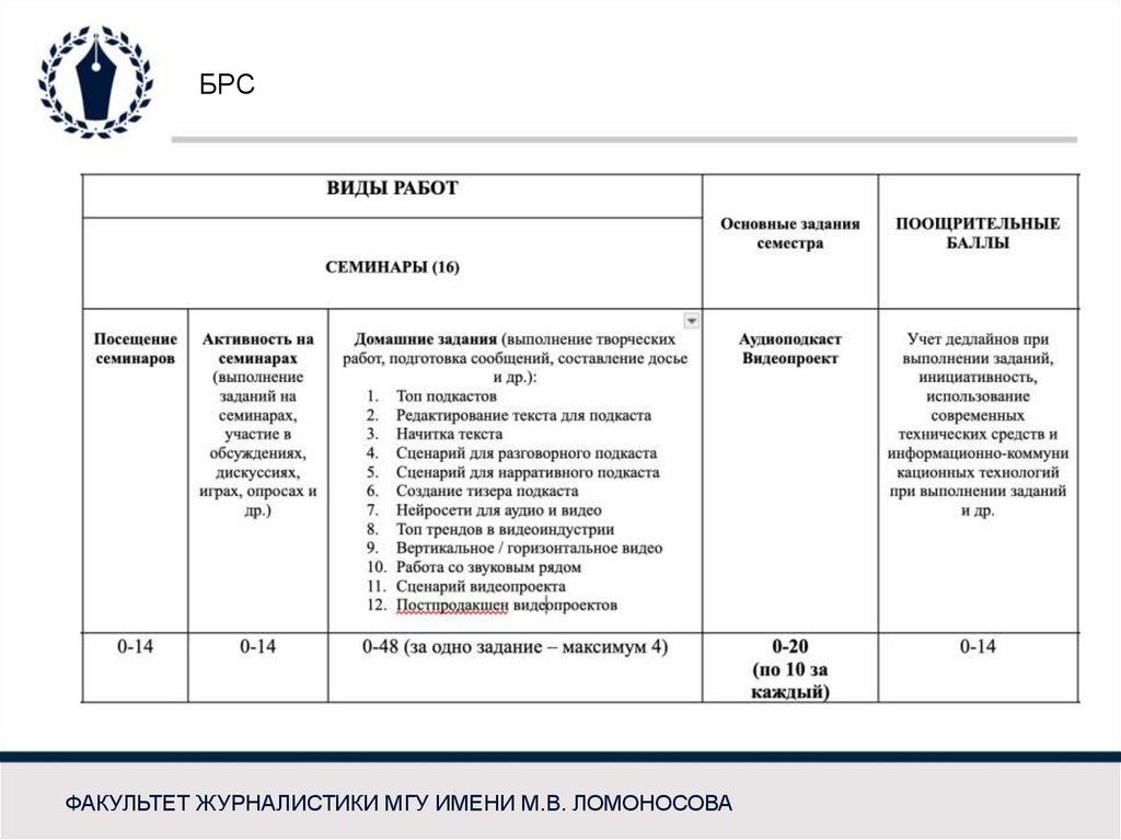 БРСФАКУЛЬТЕТ ЖУРНАЛИСТИКИ МГУ ИМЕНИ М.В. ЛОМОНОСОВА