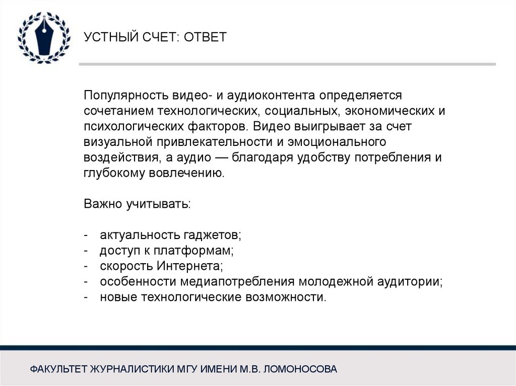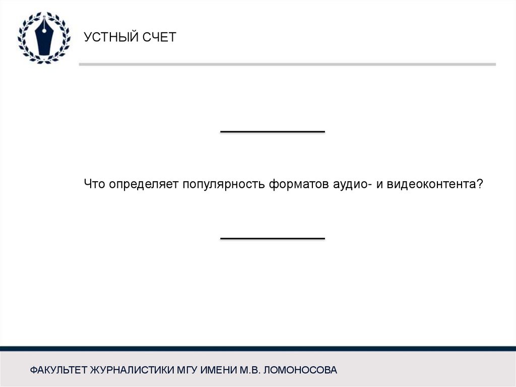 УСТНЫЙ СЧЕТЧто определяет популярность форматов аудио- и видеоконтента?