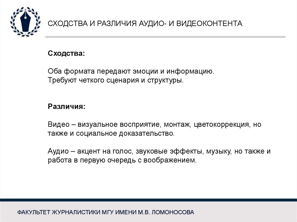 СХОДСТВА И РАЗЛИЧИЯ АУДИО- И ВИДЕОКОНТЕНТАСходства: