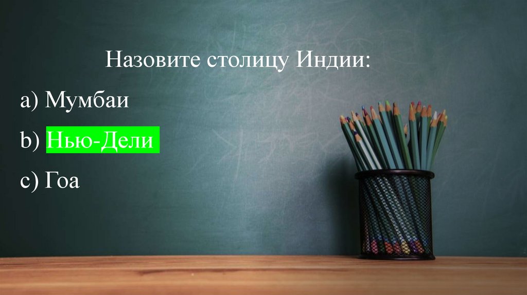 Назовите столицу Индии:a) Мумбаи